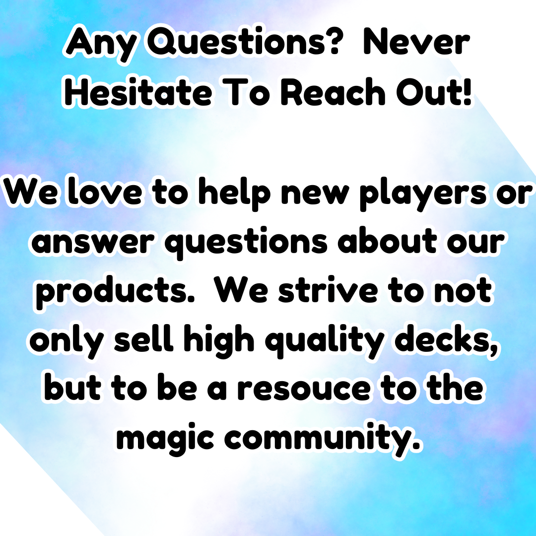 All cards included are genuine, English-language Magic: The Gathering™ cards printed by Wizards of the Coast. You will never receive fake or proxy cards. This is not an official Wizards of the Coast product, preconstructed deck, or bundle. We are not affiliated with, endorsed by, or sponsored by Wizards of the Coast, Hasbro, or any associated brands. The deck is sold unsleeved and without a deck box, unless otherwise noted. This deck does NOT include tokens